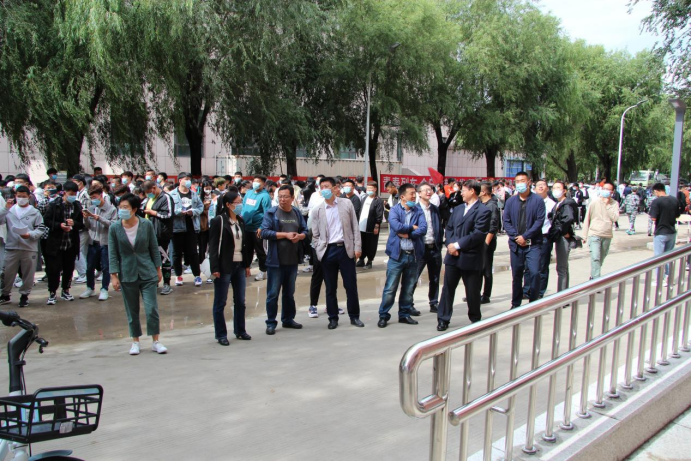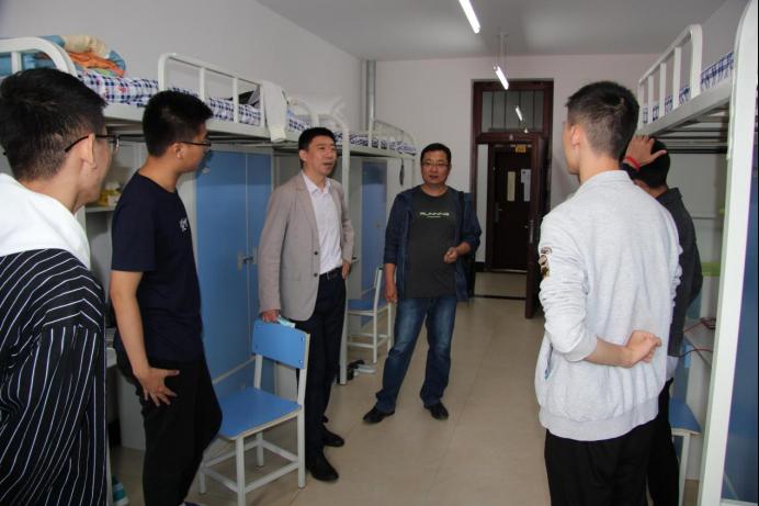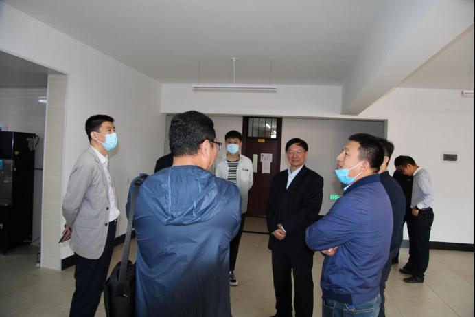 9月12日上午,机械工程公司党委书记吕刚、经理董星、党委副书记徐东昊、副经理程俊廷、副经理唐庆菊在全体辅导员陪同下深入十九员工公寓看望2021级新生。