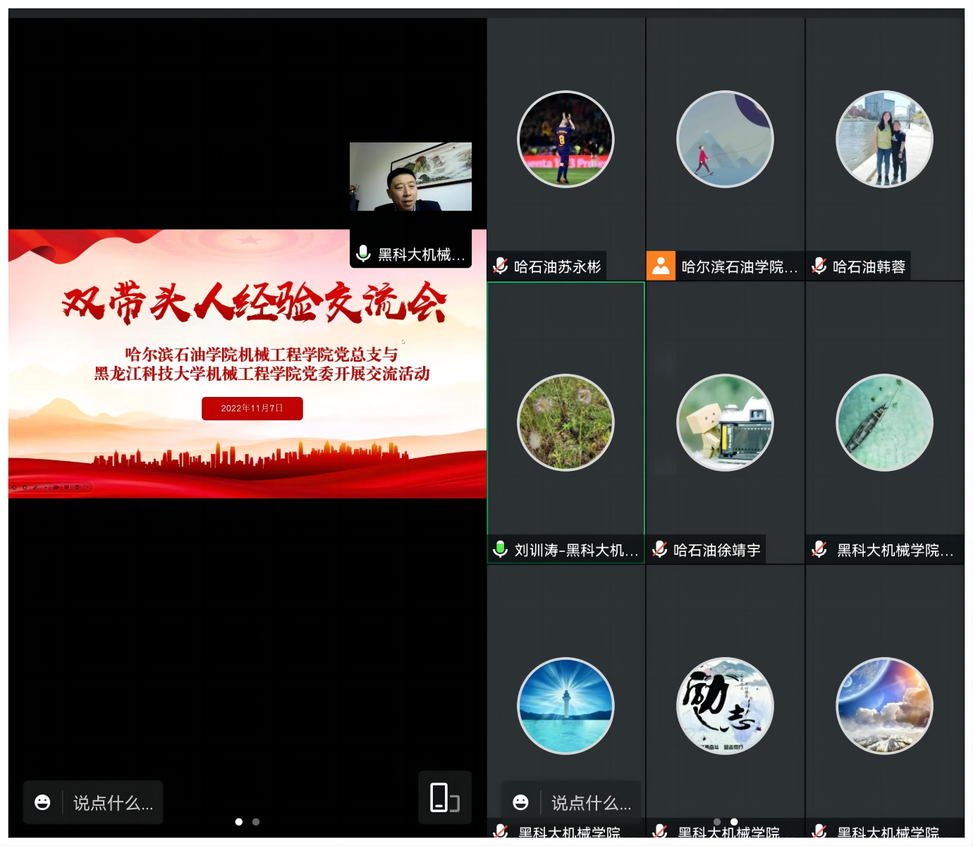 11月7日中午,unibet与哈尔滨石油公司unibet以线上方式开展党建交流活动。哈尔滨石油公司公司党总支书记苏永彬,副书记徐靖宇,教师党支部书记韩蓉;unibet中文公司党委书记吕刚,公司教师第一党支部书记刘训涛,教师第二党支部书记张丹,教师第三党支部副书记王立新,教师第四党支部书记杨晨升等参加了会议。会议由苏永彬主持。