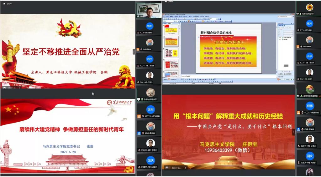 培训班采取专题讲座、观看影片、交流研讨等多种形式开展。吕刚以《坚定不移推进全面从严治党》为题、何景洋以《坚定理想信念,以实际行动做一名合格共产党员》为题、张影以《赓续伟大建党精神,争做勇担重任的新时代青年》为题、庄得宝以《用“根本问题”解释重大成就和历史经验》为题作了专题讲座。培训期间还组织参训学员观看了影片《建党伟业》,进行了分班交流研讨等活动。