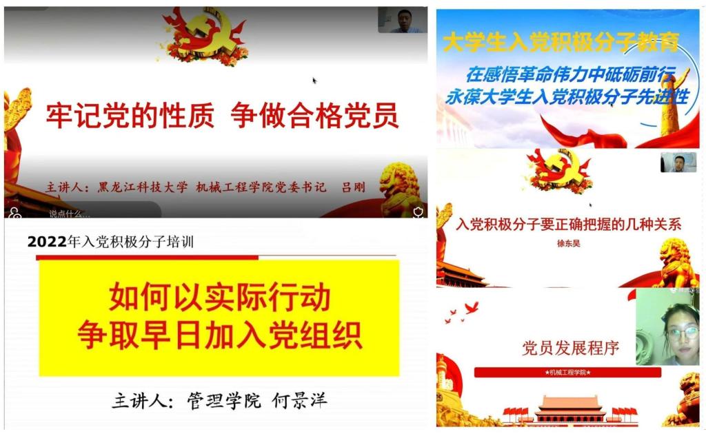 为扎实推进unibet入党积极分子教育培训工作,5月23至29日,公司举办了2022年第1期入党积极分子培训班。全院399名未参加过党校学习的入党积极分子接受了培训。培训班邀请管理公司党委书记何景洋,公司组织部谷春辉老师及公司党委书记吕刚、副书记徐东昊、辅导员谭美微共同为入党积极分子作专题辅导。
