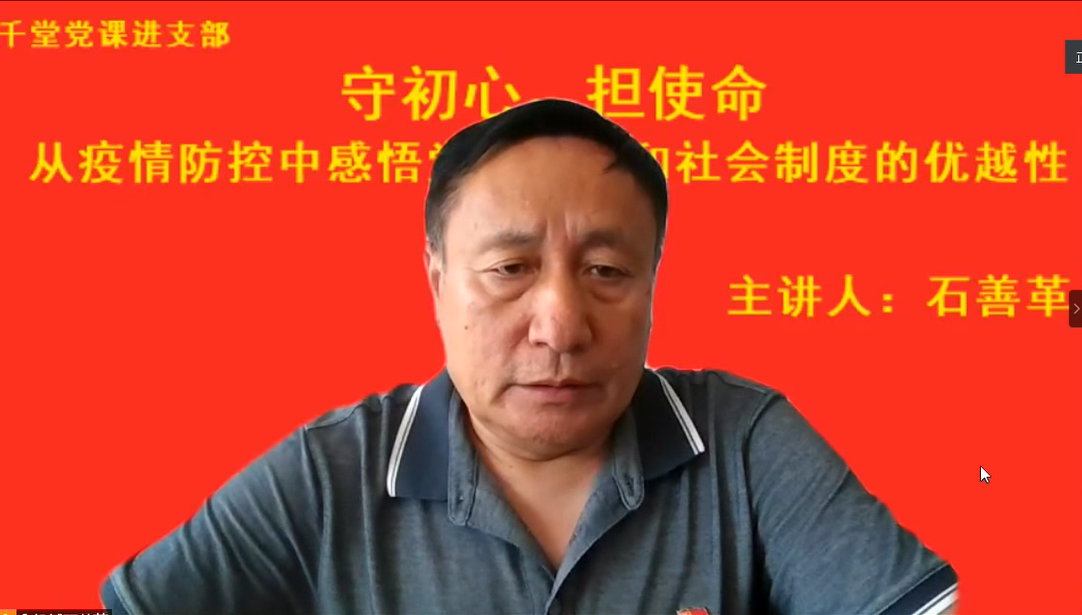随后,公司党委书记石善革以“守初心、担使命,从疫情防控中感悟党的伟大和社会制度的优越”为题,为全体师生党员讲授了一堂疫情防控专题党课。他从“四个看到,三个做法”展开,通过鲜活的事例、国内外数据对比以及感人至深的事迹分享了疫情防控斗争中的体会,生动诠释了党中央坚持全国一盘棋、集中统一领导疫情防控的制度优势,阐述了举国战“疫”巨大成绩的取得关键在于党的坚强领导。他号召,全体师生党员要深入体会党徽虽小、其重千钧的含义,要进一步增强“四个意识”、 坚定“四个自信”、做到“两个维护”,充分发挥党员在抗疫过程中的先锋模范作用,坚决打赢疫情防控阻击战。