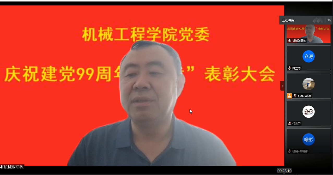 为庆祝中国共产党成立99周年,激励基层党组织和师生党员干事创业热情,不断巩固和深化“不忘初心、牢记使命”主题教育成果。7月1日下午,公司党委通过视频会议召开了庆祝中国共产党成立99周年“先优”表彰大会。公司全体教师党员和部分员工党员代表参加,会议由党委副书记张显栋主持。