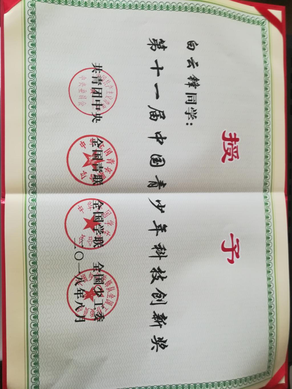 公司unibet员工白云锋喜获第十一届中国青少年科技创新奖