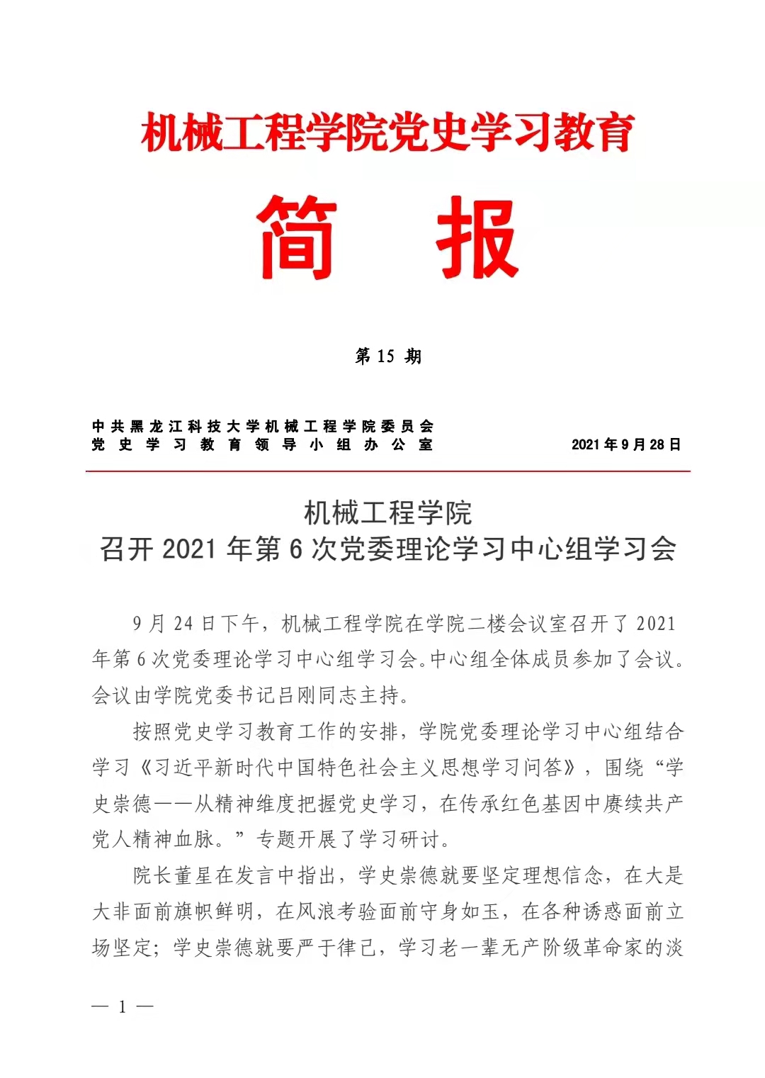 公司党史学习教育简报第15期