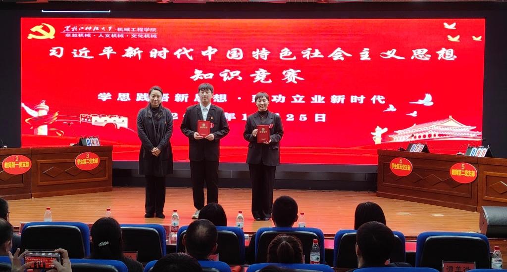 决赛现场共设置:初露锋芒(个人必答题)、同舟共济(团队必答题)、争分夺秒(抢答题)、背水一战(风险题)4个环节,重点围绕知识的深入理解和活学活用出题,题目更新颖;教师党支部和员工党支部同台PK,看点更夺目;随机抽题、轮流答题、急速抢答、决胜挑战,赛程更精彩。经过前两个环节的激烈比拼,选手们应答如流,展现了扎实的知识储备和显著的学习成果,各队比分不相上下。紧张刺激的抢答题环节紧随而来,比赛开始进入白热化阶段,各队队员眼疾手快、争分夺秒,抢答器的响声此起彼伏,上演着一场紧张刺激的“抢分大战”。几轮激烈的角逐后,比赛进入最后“背水一战”环节,面对机遇与风险的双重挑战,伴随着紧张的答题倒计时,选手们沉着冷静、密切配合。最终,教师第一党支部荣获一等奖;教师第二党支部、员工第三党支部荣获二等奖;员工第一党支部、员工第二党支部、员工第五党支部荣获三等奖。